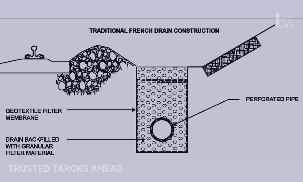 Engineers use layers of ballast, filter fabrics, and permeable pipes to guide water gently through the system. Modern ballast drainage